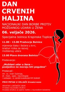 Poštovani, pozivamo Vas na obilježavanje Nacionalnog dana borbe protiv moždanog udara u žena i javnozdravstvenu akciju “Dan crvenih haljina“ koja će se i ove godine tradicionalno održati u Specijalnoj bolnici za medicinsku rehabilitaciju Krapinske Toplice, u petak, 6. veljače 2026. godine. Raspored događanja: 11.00-13.00 sati – mjerenje krvnog tlaka i razine šećera u krvi, izračun…