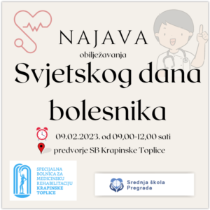 Sa zadovoljstvo Vam najavljujemo da će se 23. i 24.02.2023. godine u Varaždinu održati Tečaj 1. kategorije „Osnove prevencije i kontrole infekcija povezanih sa zdravstvenom skrbi u zdravstvenoj njezi“, a suorganizator kojeg je Specijalna bolnica za medicinsku rehabilitaciju Krapinske Toplice.
